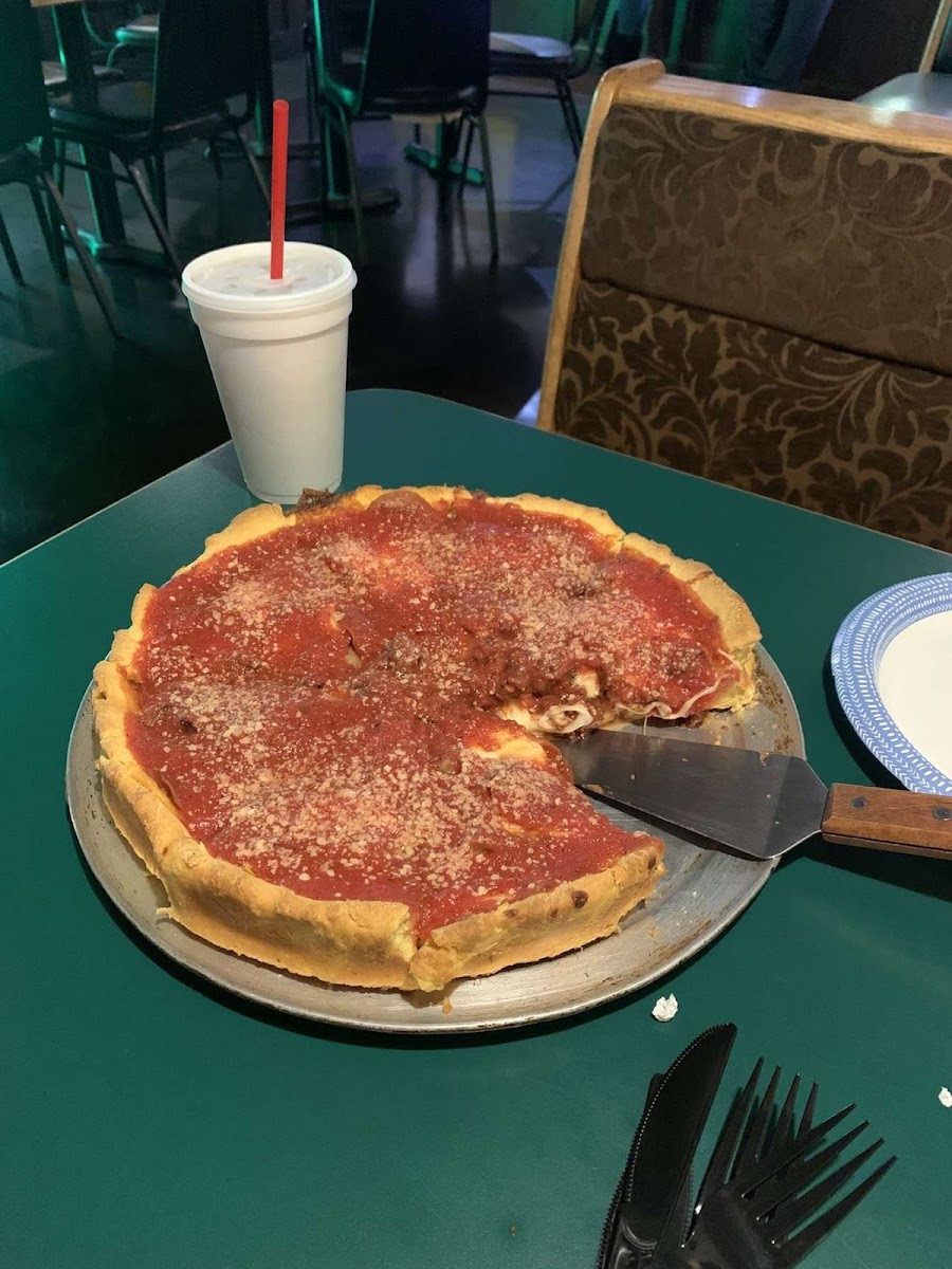 Italian Beef and Giardiniera Deep Dish Cheese Pizza